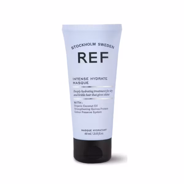 REF Intense Hydrate Masque är en djupt vårdande behandling för torrt, strävt eller fuktfattigt hår. Berikad med ekologisk kokosolja och botaniska extrakt ger den intensiv och långvarig återfuktning. Håret blir mjukare, mer följsamt och lättare att hantera, samtidigt som elasticiteten förbättras och oönskad flygighet dämpas. Perfekt för hår som påverkats av miljö, kemiska behandlingar eller värmestyling – masken gör håret friskt, glansigt och mer motståndskraftigt redan från första användningen.