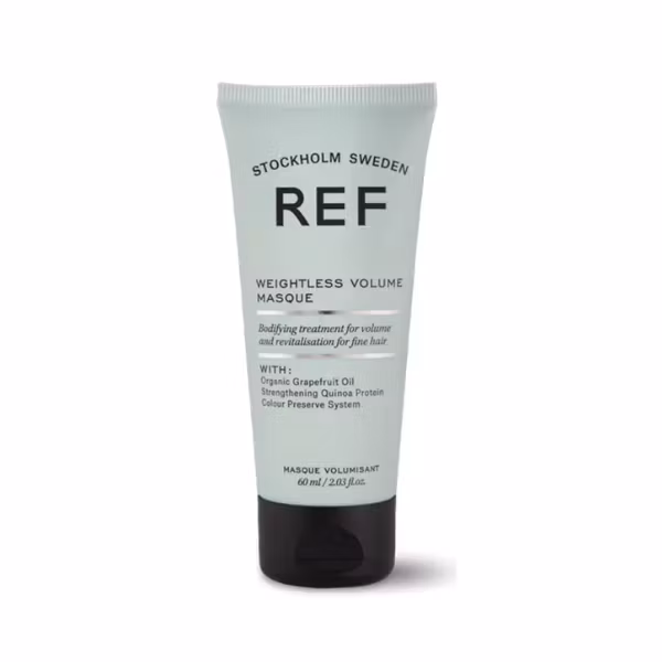 REF Weightless Volume Masque ger intensiv återfuktning och styrka till fint hår utan att tynga ner. Med ekologisk grapefruktolja och quinoaprotein stärks hårstrukturen, samtidigt som volym och mjukhet bevaras. Perfekt för en lätt, djupverkande behandling som lämnar håret luftigt, fräscht och fullt av liv.