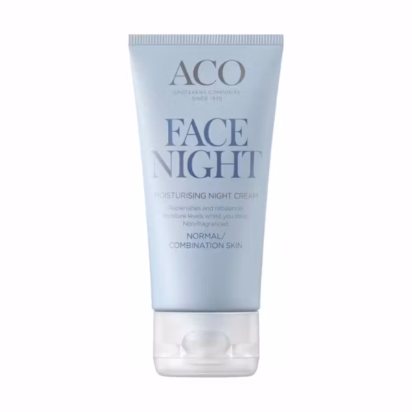 ACO Face Moisturising Night Cream är en vårdande och återfuktande nattkräm för normal och kombinerad hy.