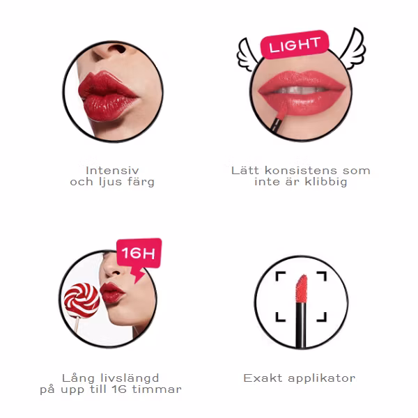 Bourjois Rouge Laque, det nya flytande läppstiftet med intensiva och långvariga färger som inte lämnar en kladdig känsla. Och det är superlätt också! Om du vill att din läppfärg ska hålla hela natten erbjuder Rouge Laque dig en silkeslen glans och ultrapigmenterade färger utan att behöva ge upp fixering eller komfort.